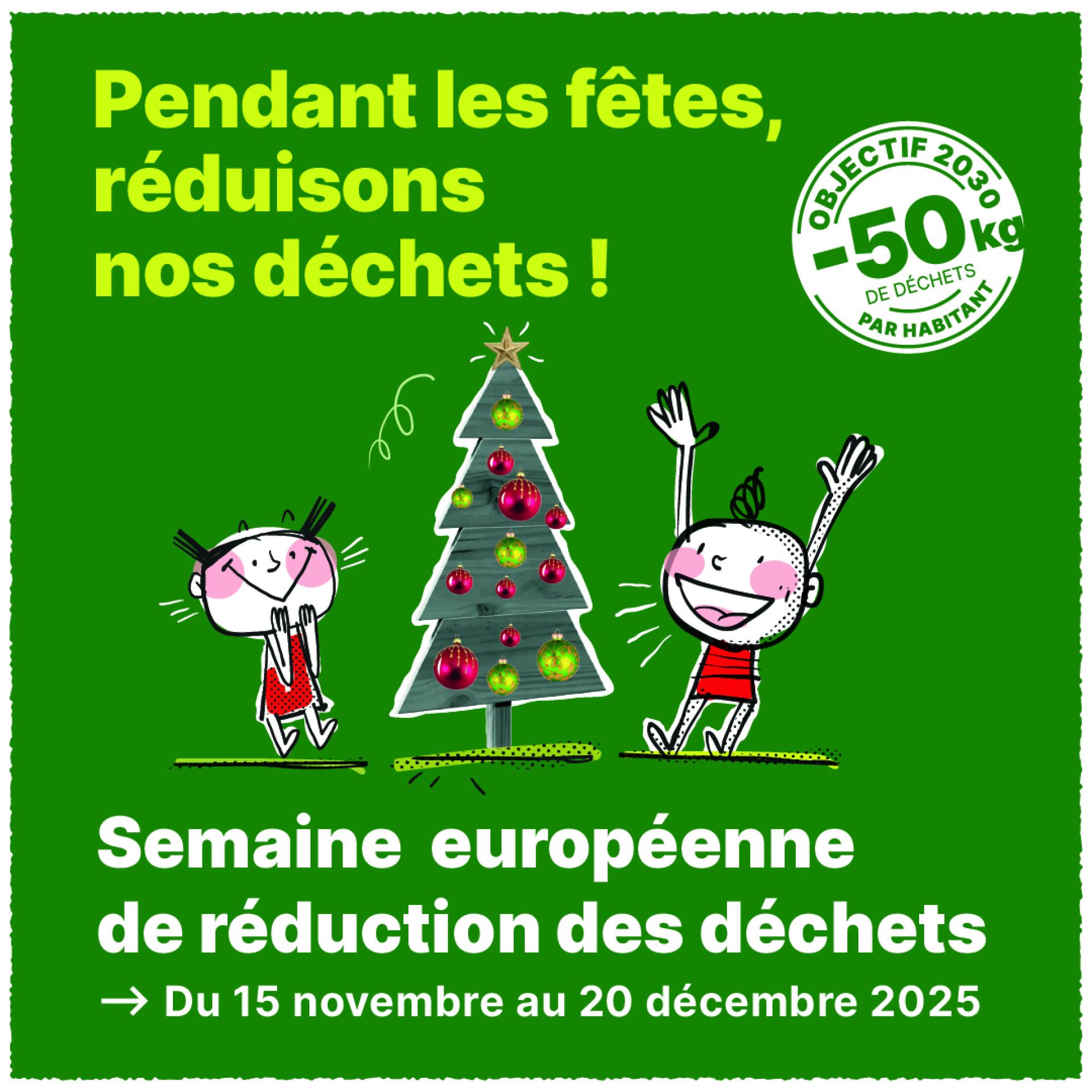 Du 15 novembre au 20 décembre 2025, c’est la Semaine européenne de réduction des déchets, sur le thème de la réduction des déchets pendant les fêtes de fin d’année !