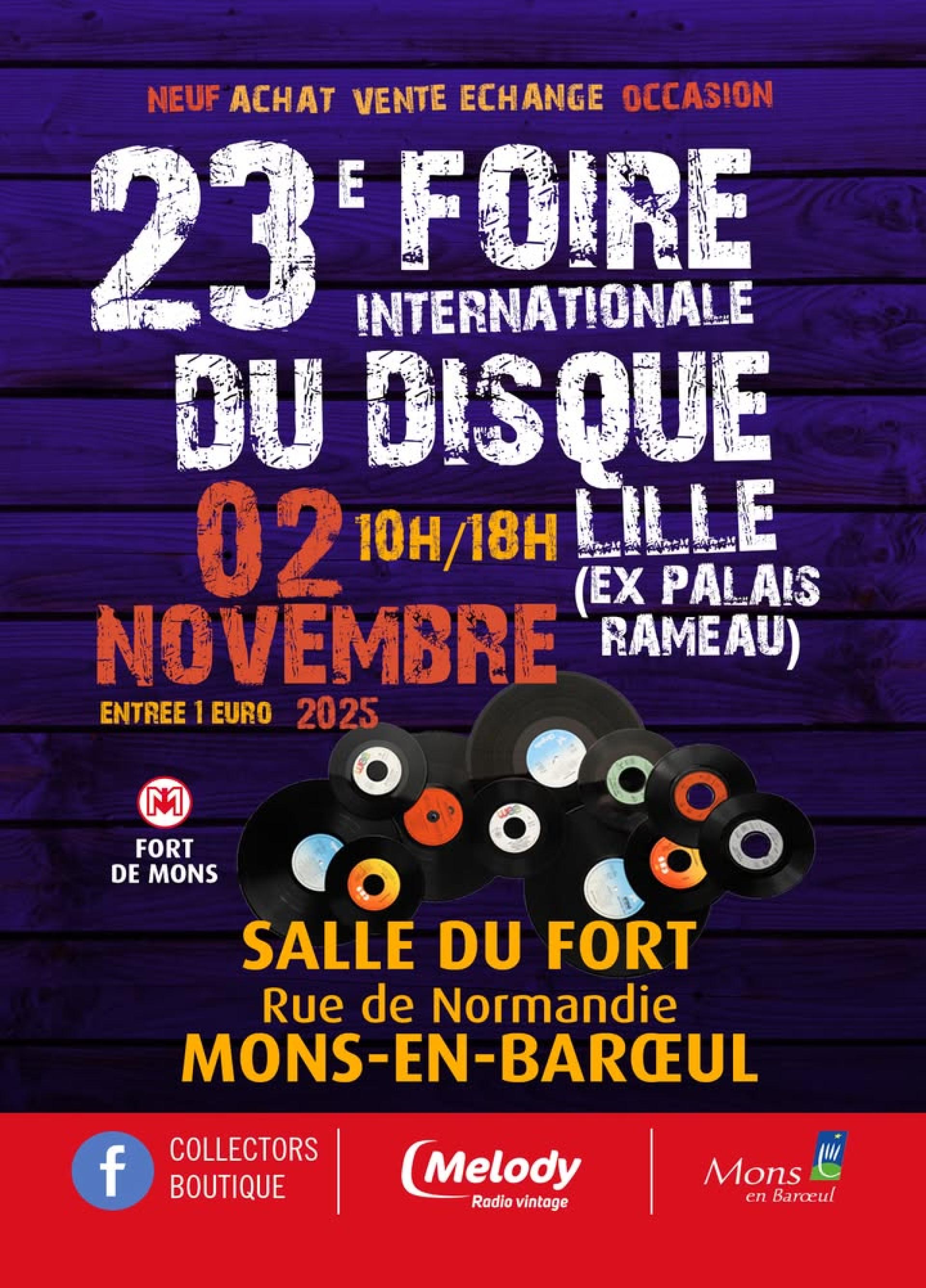 Mordus de disques et de musique, et si vous passiez à la 23e foire internationale du disque ? Rendez-vous dimanche 2 novembre 2025 de 10h à 18h à la salle du Fort !