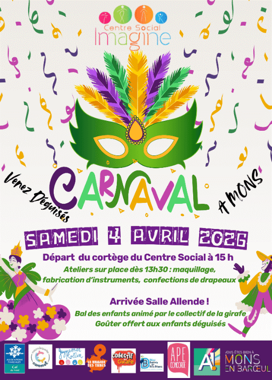 Venez tous déguisés pour participer à la grande fête de carnaval à Mons ! Au programme :