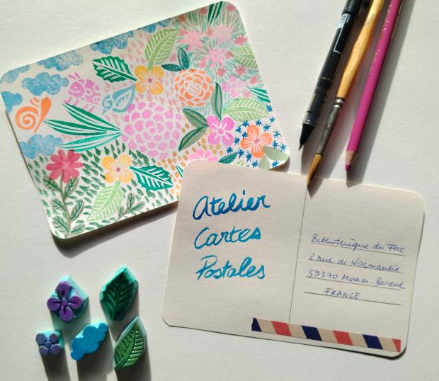 A l’ère de l’instantanée qui nous rend toutes et tous un peu timbré, redécouvrons le plaisir des lettres postales et de la correspondance. C’est l’artiste Amélie Boquet qui vous proposera la création visuelle d’une carte postale, à travers de multiples techniques (collages, tampons, dessins…).