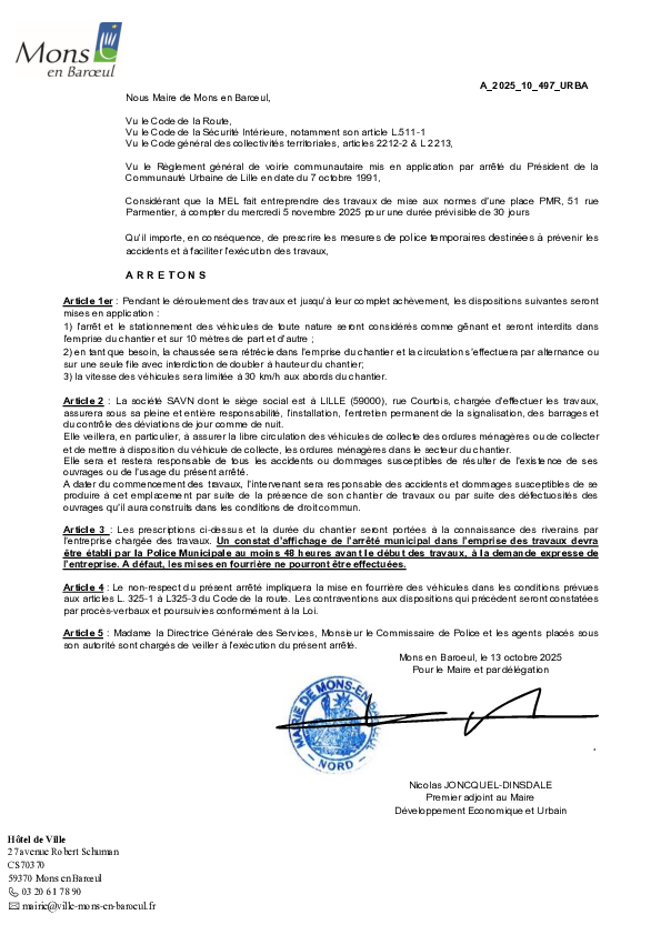 A2025-07-371 Restriction de stationnement Avenue du Baroeul, Chancelier Adenauer et Marc Sangnier