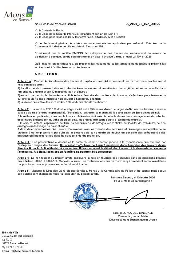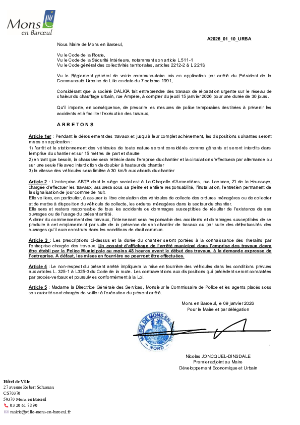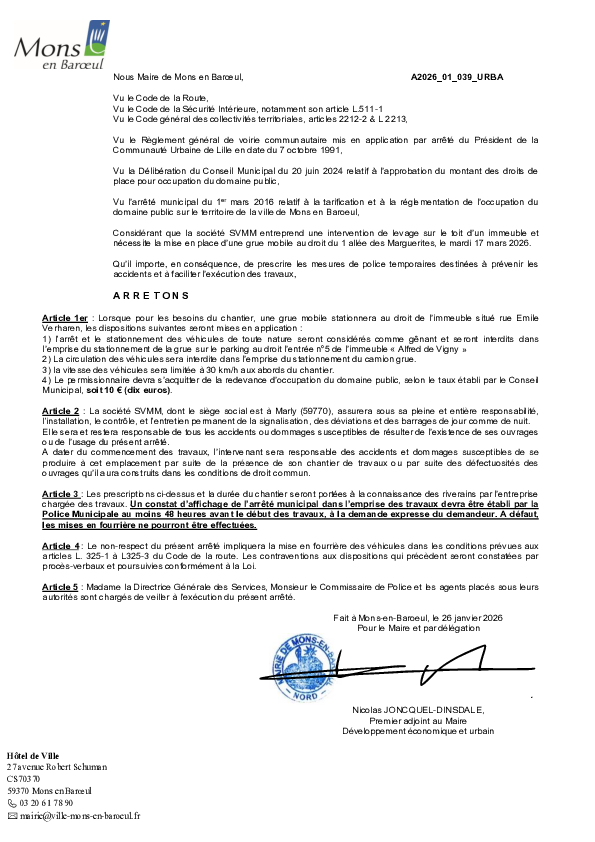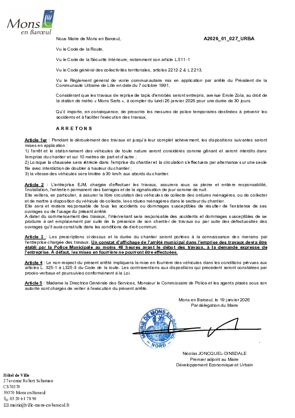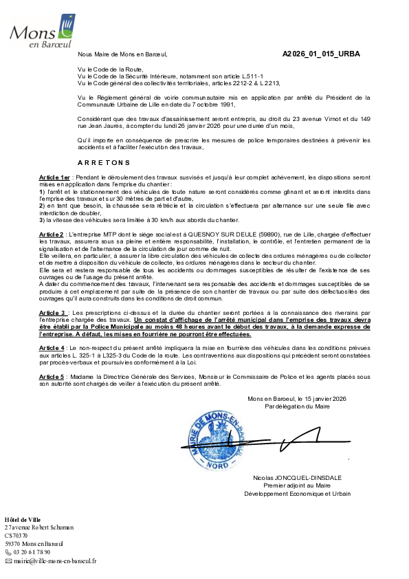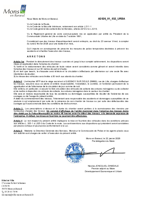 A2026-01-015 Restriction de stationnement avenue Virnot et rue Jean Jaurès