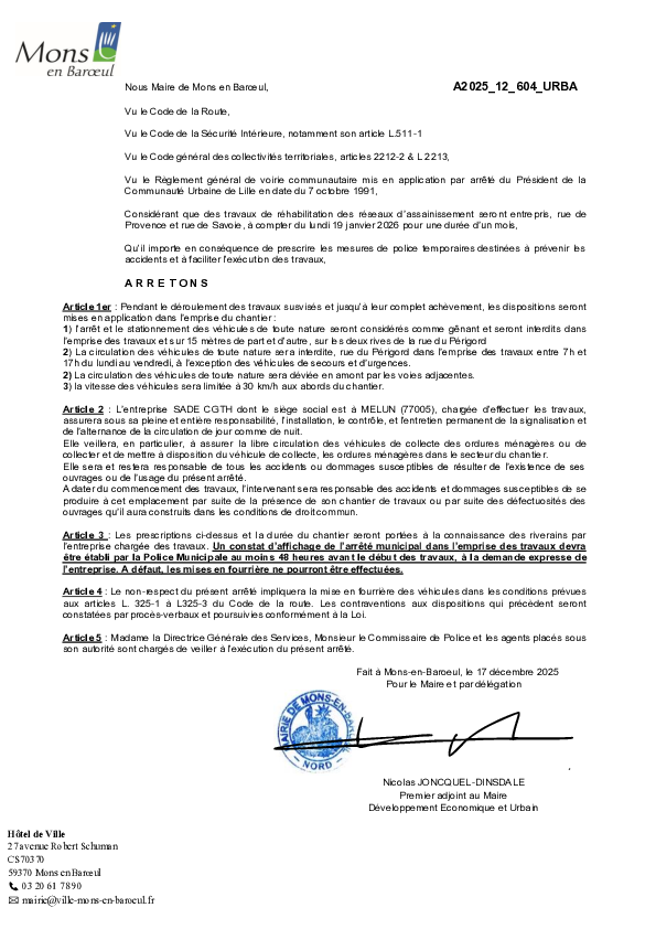 A2025-12-604 Restriction de circulation et stationnement rue de Provence et rue de Savoie