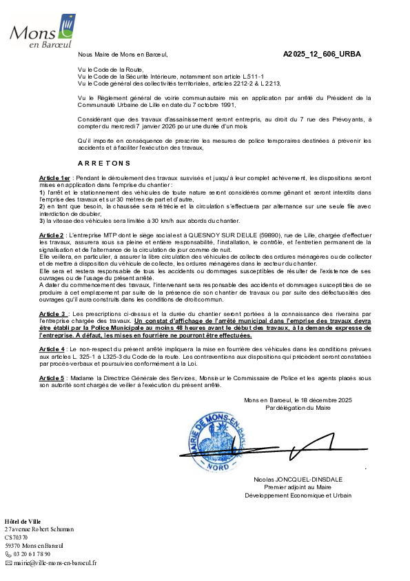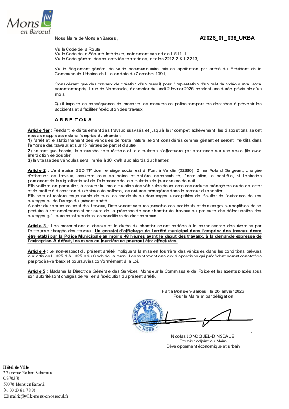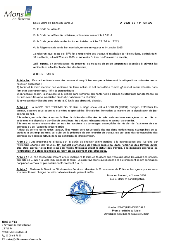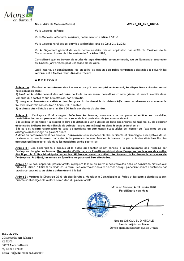A2025-10-530 Restriction de circulation Rue de Normandie et rue Jules Ferry