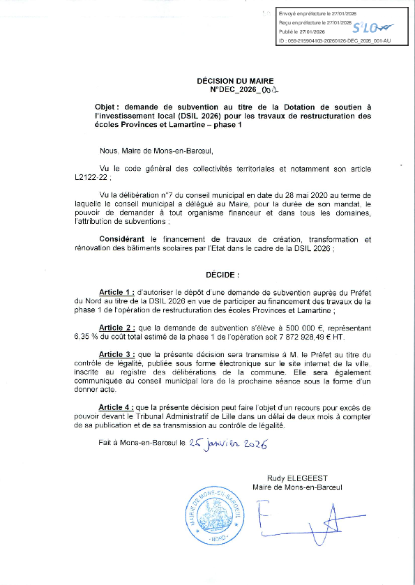 DEC_2026_001 Demande de subvention au titre de la DSIL 2026 pour les travaux de restructuration des écoles Provinces et Lamartine-Phase 1