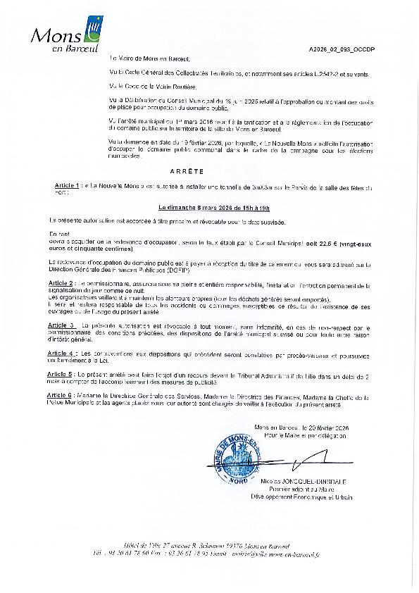 A2026-02-093 Autorisation d'installation d'une tonnelle Parvis Salle des fêtes du Fort