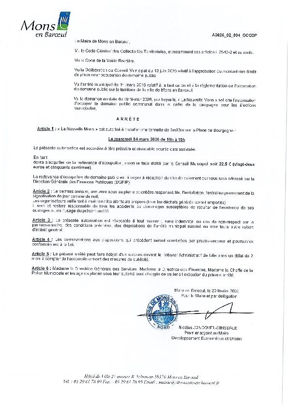 a2026-02-094 Autorisation d'installation d'une tonnelle Place de Bourgogne