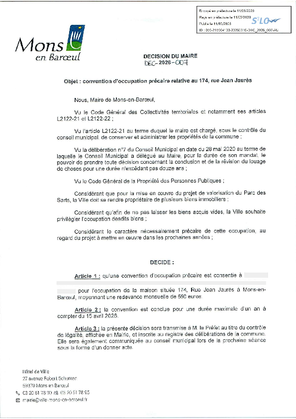 2024-06-21 Convention d'occupation précaire d'un logement appartenant au domaine privé de la Ville