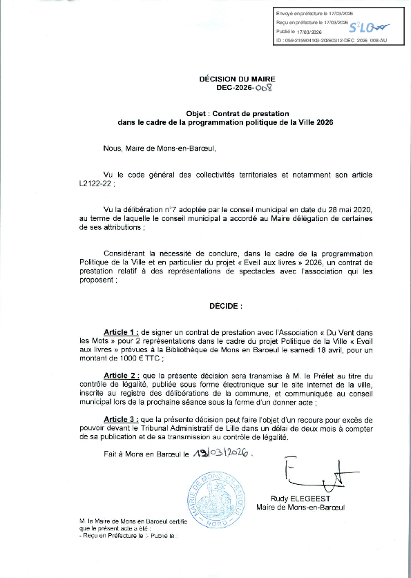 Contrat de prestation dans le cadre de la programmation Politique de la Ville 2026