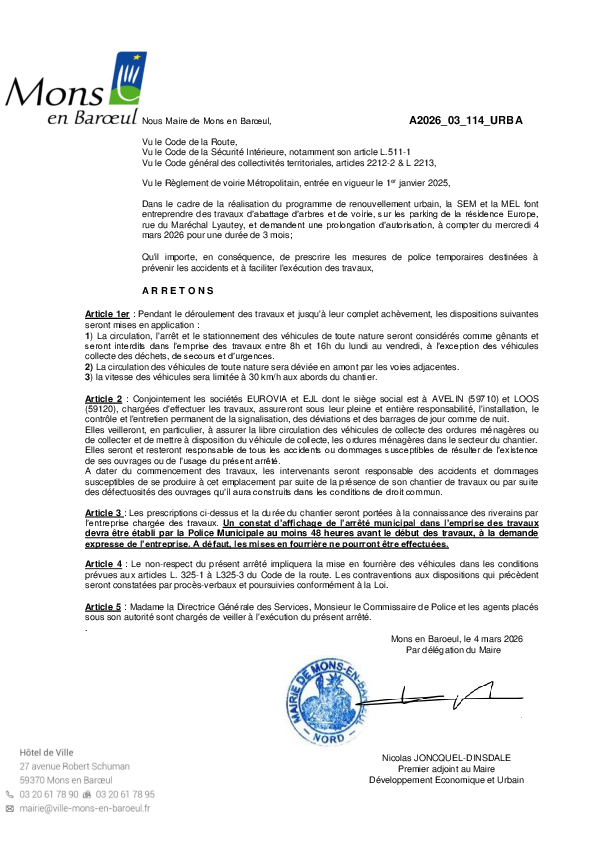 A2026-03-114 Restriction de circulation sur les parkings de le résidence Europe