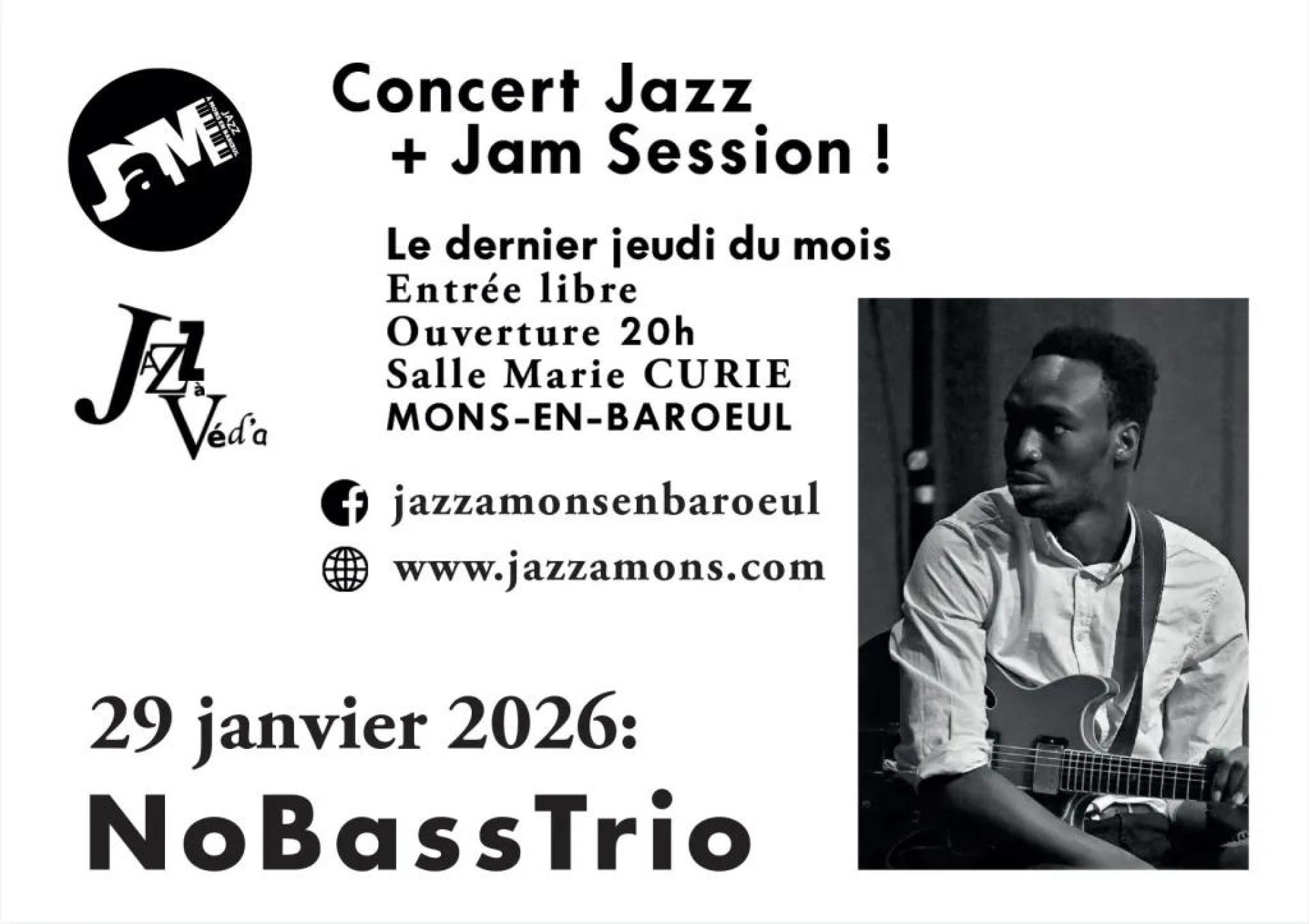Si la basse représente la colonne vertébrale d’un groupe, la musique du NoBass Trio s'articule le dos courbé, déployant ainsi les ailes de la singularité. Cette formation atypique est composée de Bertrand Maïlar (guitare), Abel Jednak (saxophones) et Marc-Antoine Moercant (batterie). Trois musiciens aux univers variés, qui allient compositions et arrangements pour jouer avec la multiplicité des rôles comme source d'inspiration infinie.