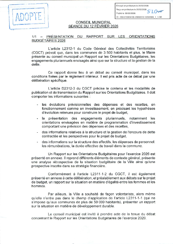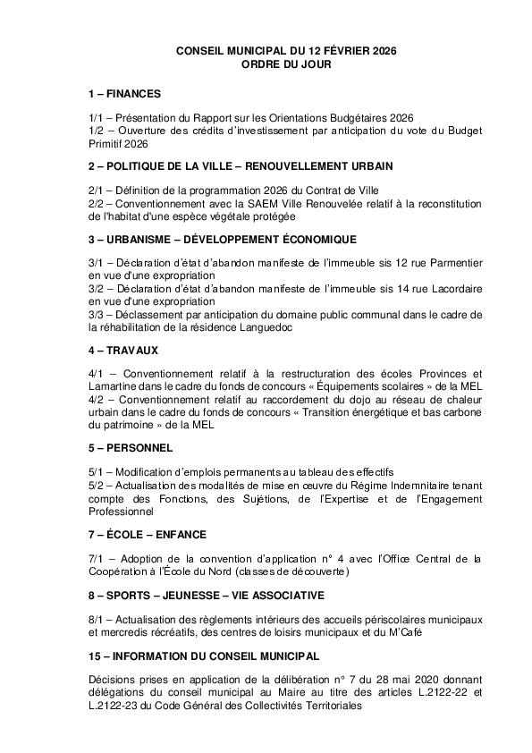 Conseil municipal du 12 février 2026