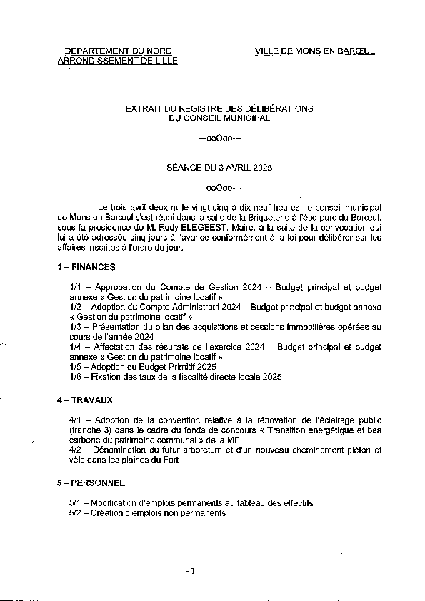 La séance du conseil municipal a lieu le jeudi 3 avril prochain à 19h00, salle de la Briqueterie à l'éco-parc du Barœul (accès par le 9 rue du Barœul).
