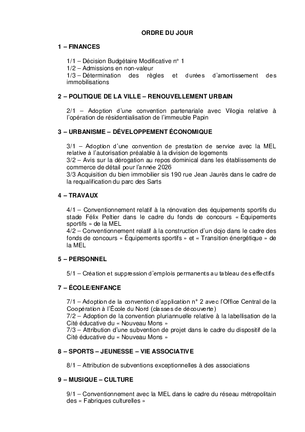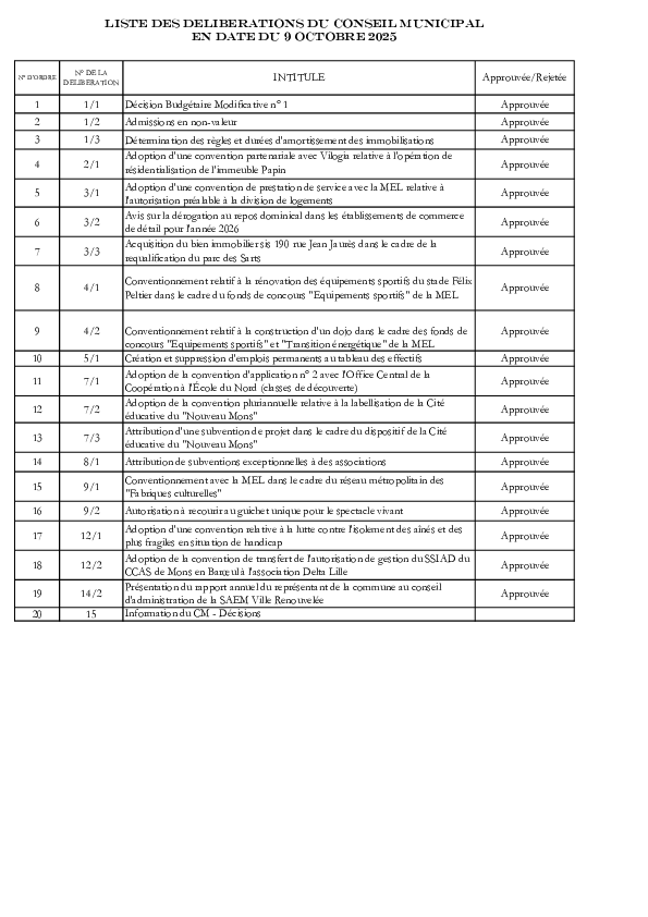 La séance du conseil municipal a lieu le jeudi 9 octobre prochain à 19h00, salle de la Briqueterie à l'éco-parc du Barœul (accès par le 9 rue du Barœul)