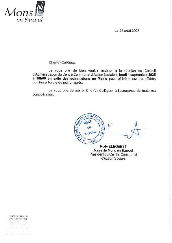 CA du CCAS 4 septembre 2025 - Ordre du jour