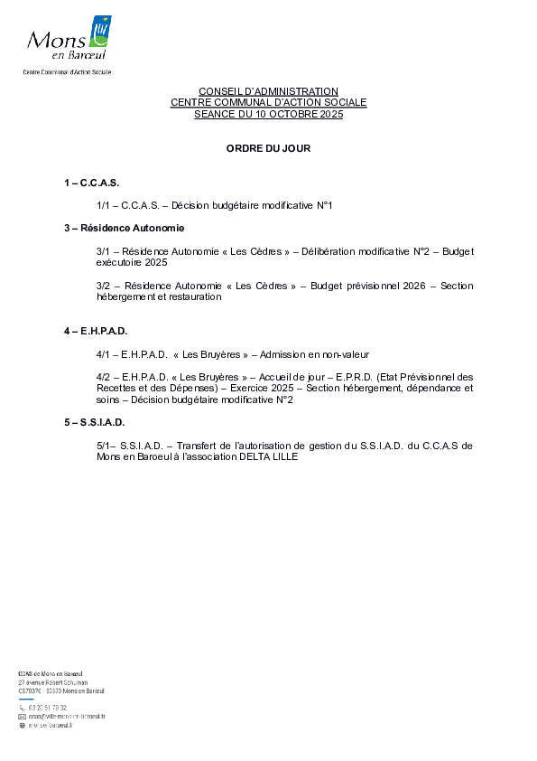 CA du CCAS 10 octobre 2025 - Ordre du jour