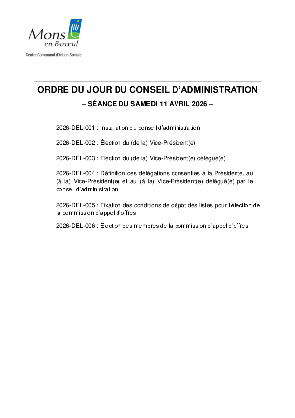 CA du CCAS 11 avril 2026 - Ordre du jour